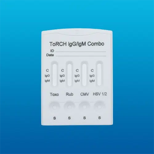 La prueba rápida de TORCH IgG e IgM es una prueba cualitativa para las infecciones de Toxoplasma, Rubeola, Citomegalovirus y Herpes Simple 1 y 2 que son causantes de las infecciones intrauterinas hacia el feto. Por esta razón es una excelente herramienta para el tamizaje hacia la mujer embarazada en su control prenatal.